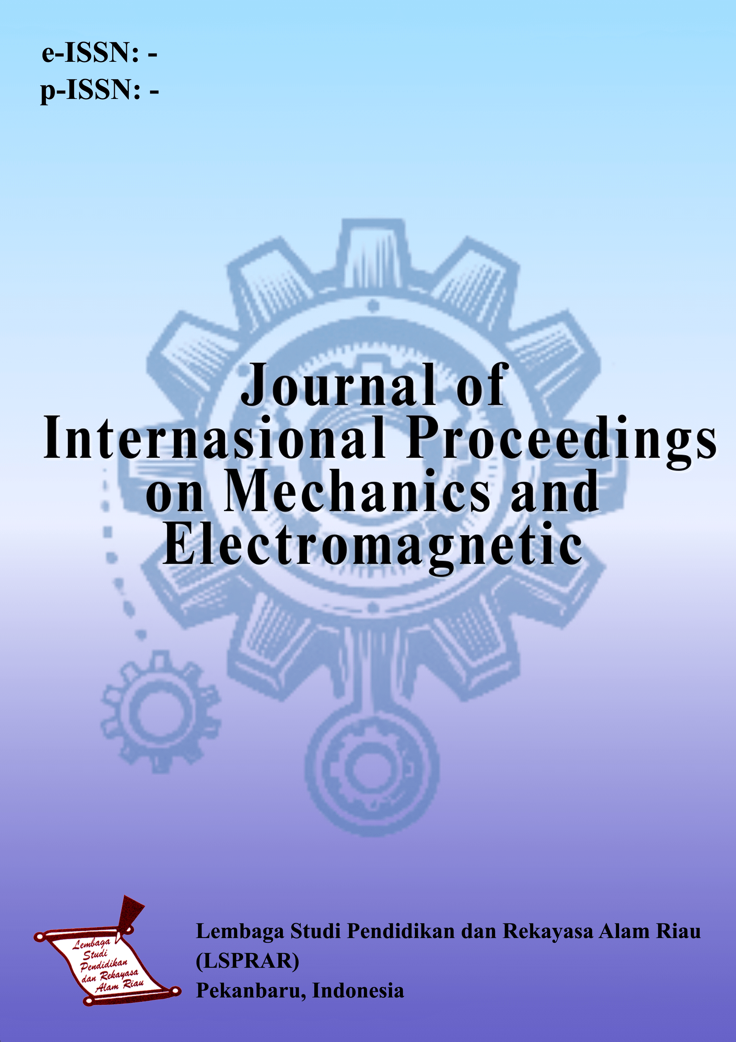 Journal of International Proceedings on Mechanics and Electromagnetic (JIPME) is a peer-reviewed journal (e-ISSN: - | p-ISSN: -) published regularly in April, August, and December by the Lembaga Studi Pendidikan and Rekayasa Alam Riau (LSPRAR) in collaborates with the Indonesian Physical Society (PSI)-Riau and Universitas Islam Mulia Yogyakarta. JIPME is a periodical publication that publishes scientific articles on research results in the fields of basic science and engineering.