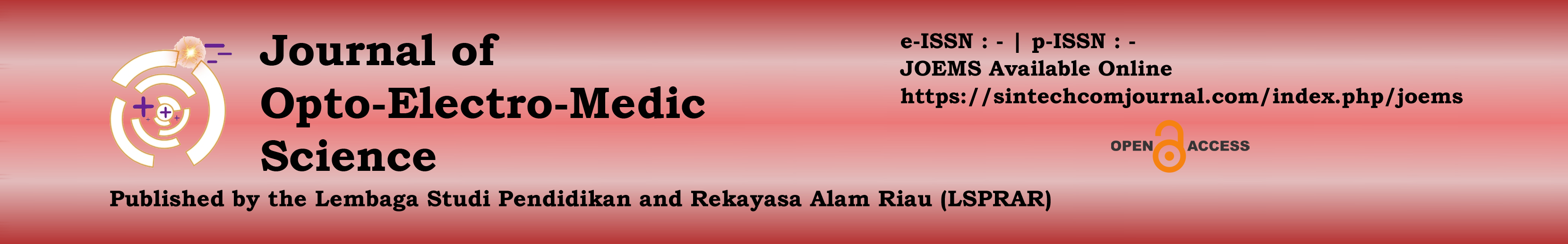 Journal of Opto-Electro-Medic Science (JOEMS) is a peer-reviewed journal (e-ISSN: - | p-ISSN: -) published regularly in February, June, and October by the Lembaga Studi Pendidikan and Rekayasa Alam Riau (LSPRAR) in collaborates with the Indonesian Physical Society (PSI)-Riau and Universitas Islam Mulia Yogyakarta. JOEMS is a periodical publication that publishes scientific articles on research results in the fields of optoelectronic and medical sciences.